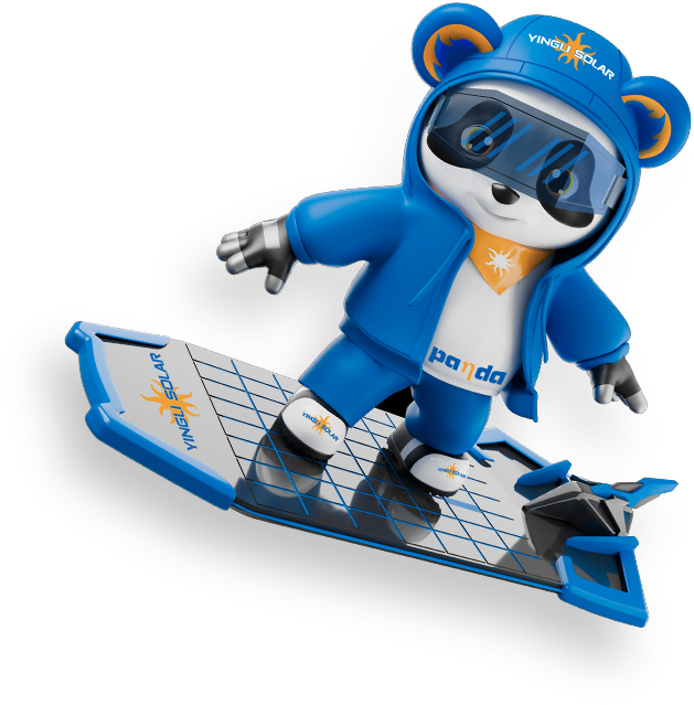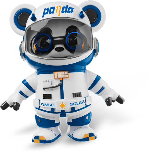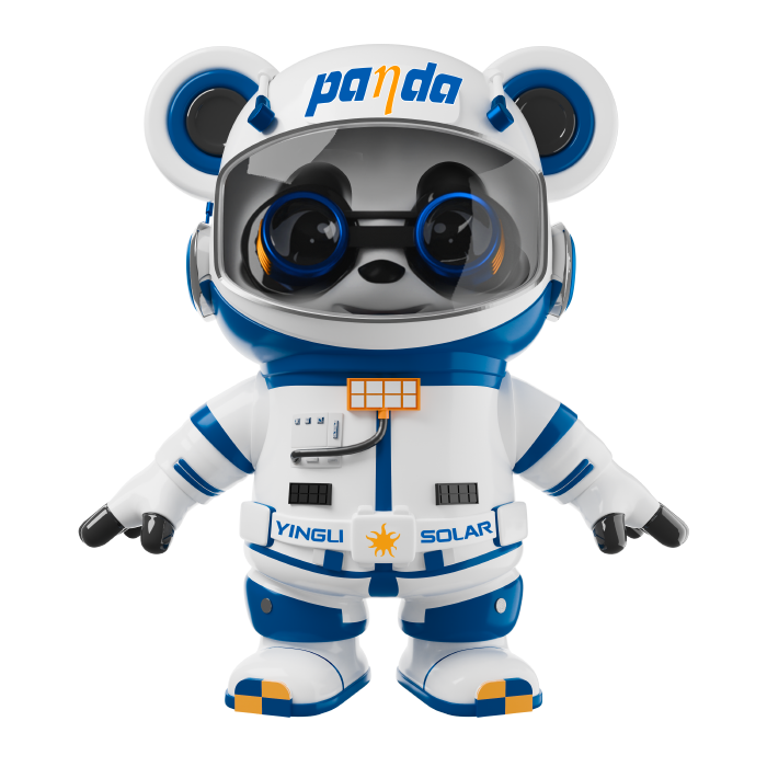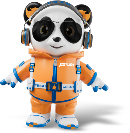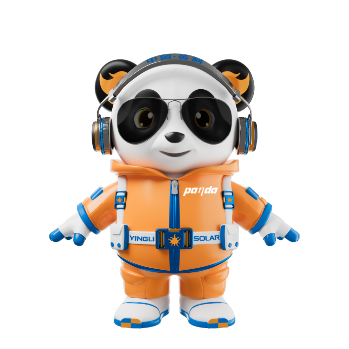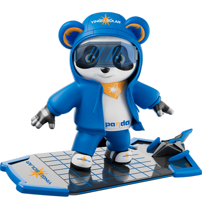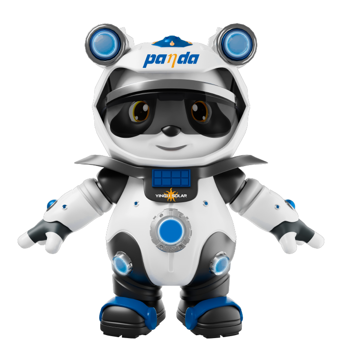 此款吉祥物为产品型,代表的是熊猫产品可拓展应用于更多的场景,光伏在新技术领域的不断探索,以及在极端环境中光伏应用的无限可能与想象。
