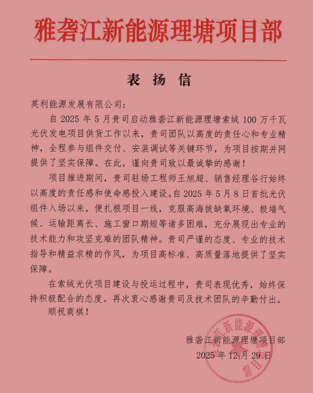 项目位于国家首个水风光一体化基地——雅砻江流域水风光一体化基地内,海拔最高处达4800米。面对高原恶劣环境挑战,中国·金沙检测线路js69官方入口团队凭借丰富的高原项目经验和可靠产品品质,不仅率先完成供货,且过程中产品几无破损,为项目如期并网争取了更多时间。