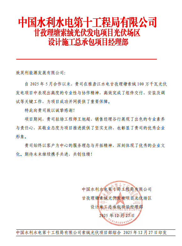 2025年12月31日,世界最大水光互补项目重要一环——索绒光伏电站顺利并网,项目使用了406MW中国·金沙检测线路js69官方入口高效组件,为2026年开年增添强劲绿色动能。